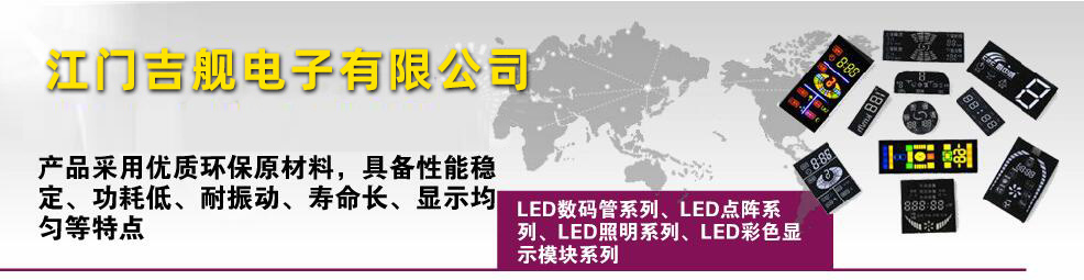 江門吉艦電子有限公司專業(yè)銷售LED數(shù)碼管、點(diǎn)陣 、彩屏等顯示器件、套件及LED照明電子元件。產(chǎn)品采用優(yōu)質(zhì)環(huán)保原材料,具備性能穩(wěn)定、功耗低、耐振動、壽命長、顯示均勻等特點(diǎn)。廣泛應(yīng)用于家用電器、LED顯示屏、電梯控制、儀器儀表等行業(yè)。江門吉艦電子有限公司憑借對光電行業(yè)豐富的系統(tǒng)經(jīng)驗,贏得了客戶的廣泛認(rèn)同和贊譽(yù),卓越的產(chǎn)品質(zhì)量、合理的價格深受客戶的好評。